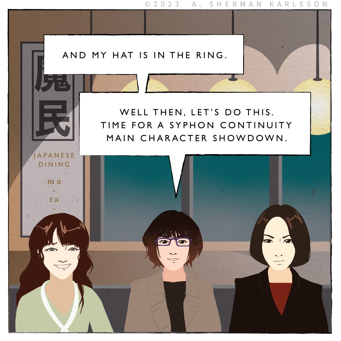 And if you enjoyed a bit of side snark, you can also follow the periodic Syphon Continuity After Dark webcomic on a variety of platforms: